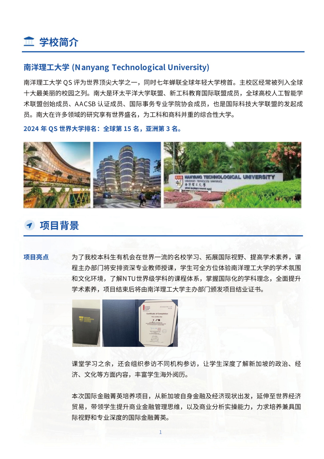 学途新加坡南洋理工大学国际金融菁英培养研学营:全面提升商业金融管理思维及商业分析实操能力